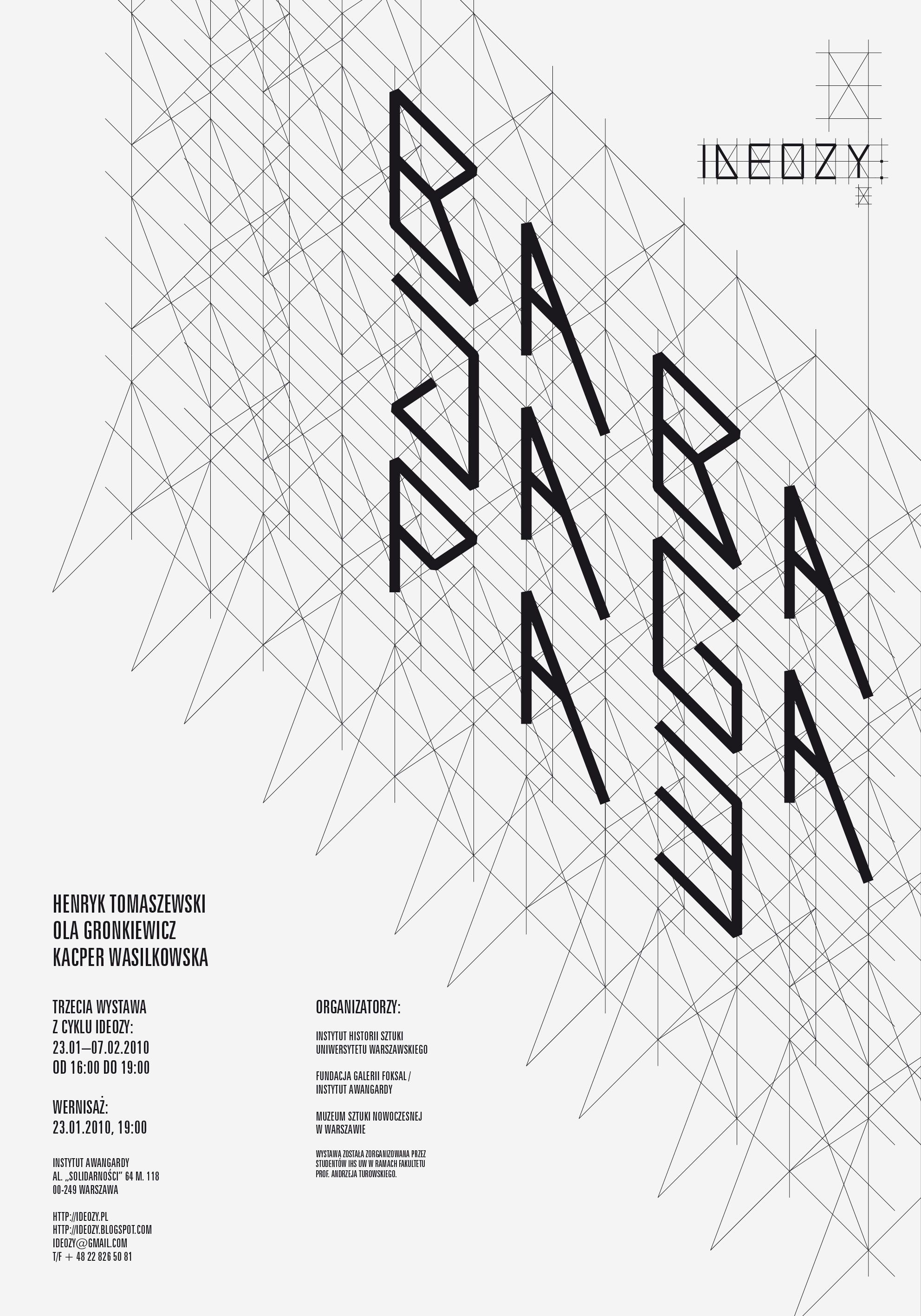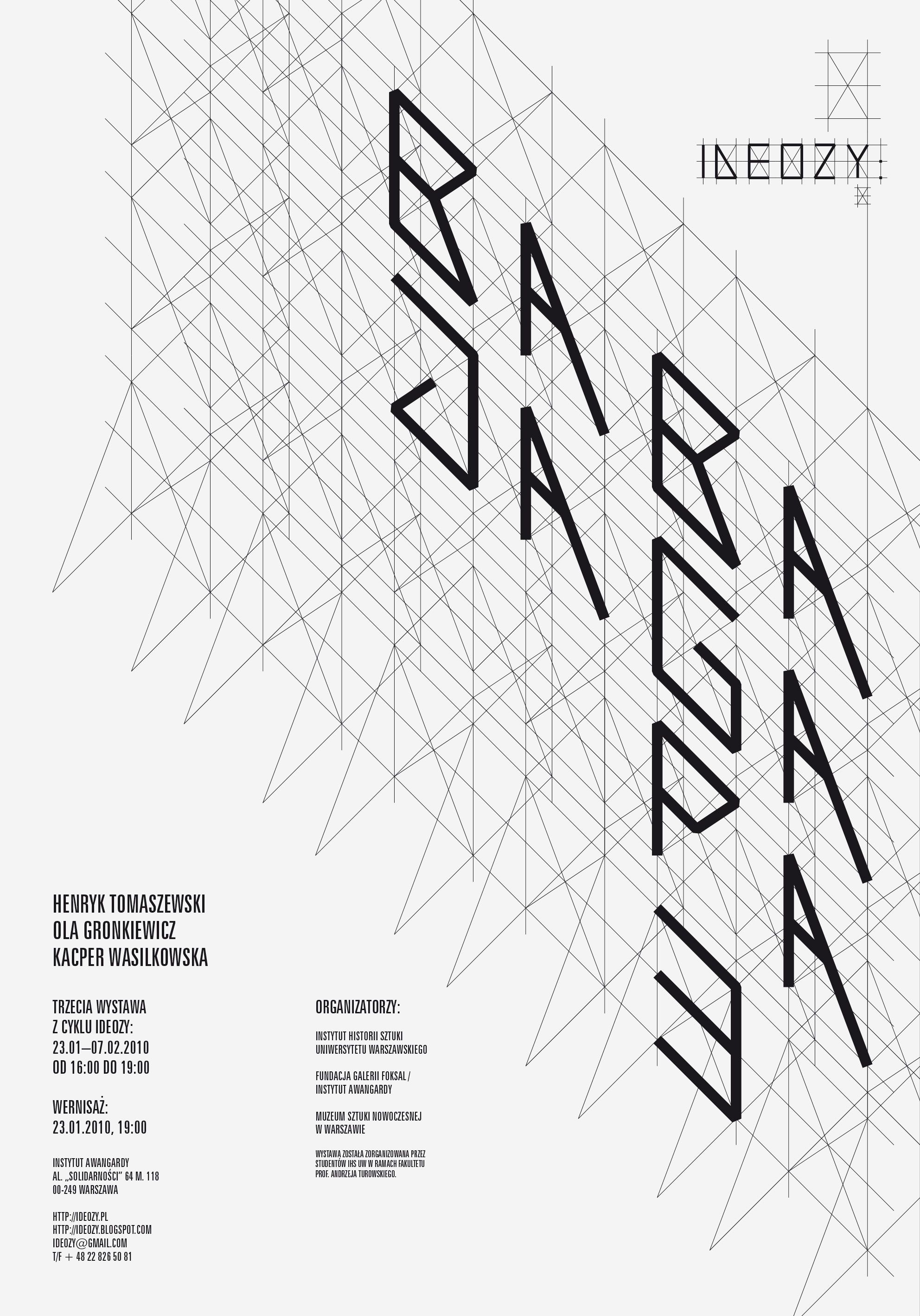 Visual identity and posters for a series of exhibitions in the Avant-Garde Institute with accompanying lectures by Prof Andrzej Turowski (Université de Bourgogne, Dijon) in the Museum of Modern Art in Warsaw. The shows were organised by young art historians as part of Prof Andrzej Turowski’s curatorial workshop under the patronage of the University of Warsaw Institute of Art History, the Museum of Modern Art in Warsaw and the Foksal Gallery Foundation.