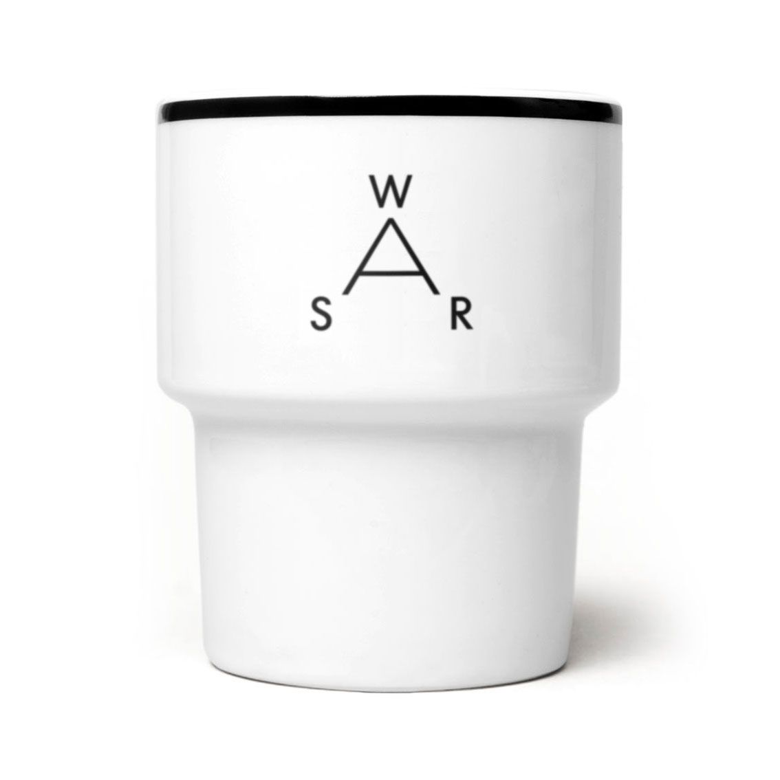 Series of logos designed by Maciej Ratajski for MAMSAM mugs. Since 2010, MAMSAM has been making porcelain mugs featuring unique logos by contemporary Polish artists and graphic designers. Curated by Mikołaj Długosz, these limited series mugs echo the aesthetic of communist-era Poland. Once mass-produced during the Polish People's Republic, the practical and stackable mugs draw inspiration from 1960s German hotel tableware design. The contemporary logos not only look good but also comment on current events, blending modern cultural references with the nostalgia for the graphic design of 1970s Poland.