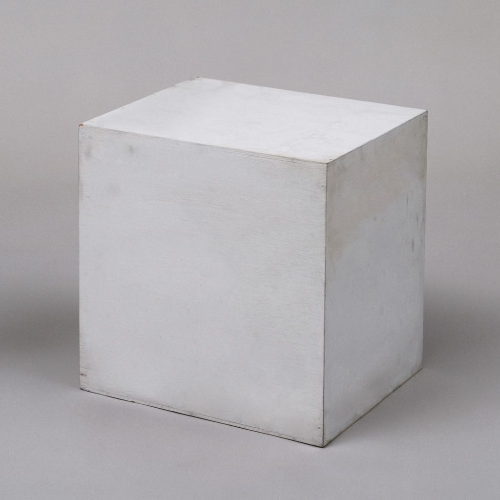 A Box is a reference to Brillo Box (1964) by Andy Warhol. Removing the appropriated Brillo branding made with silkscreen ink leaves a wooden 43.3 x 43.2 x 36.5 cm box painted white.