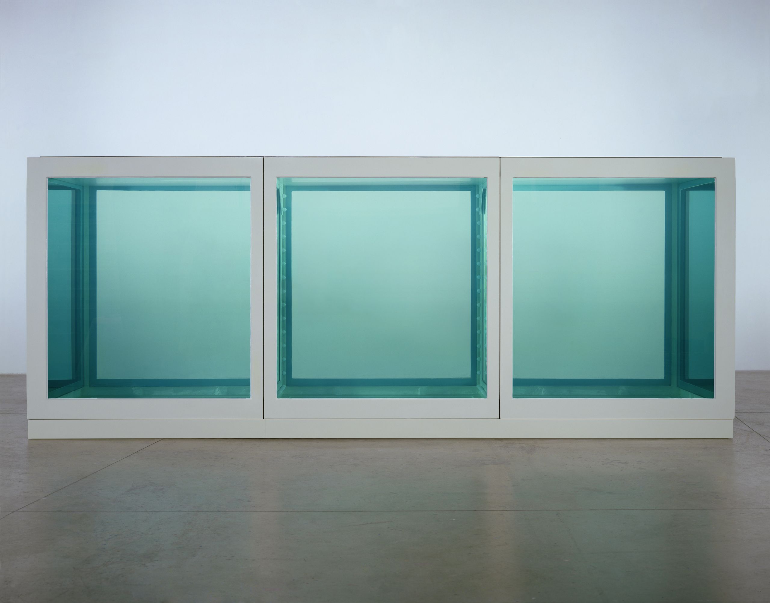 A Vitrine is a reference to The Physical Impossibility of Death in the Mind of Someone Living (1991) by Damien Hirst. Removing a 3.5-metre long female Tiger Shark leaves a 213 cm × 518 cm × 213 cm glass and steel vitrine filled with water and formaldehyde.