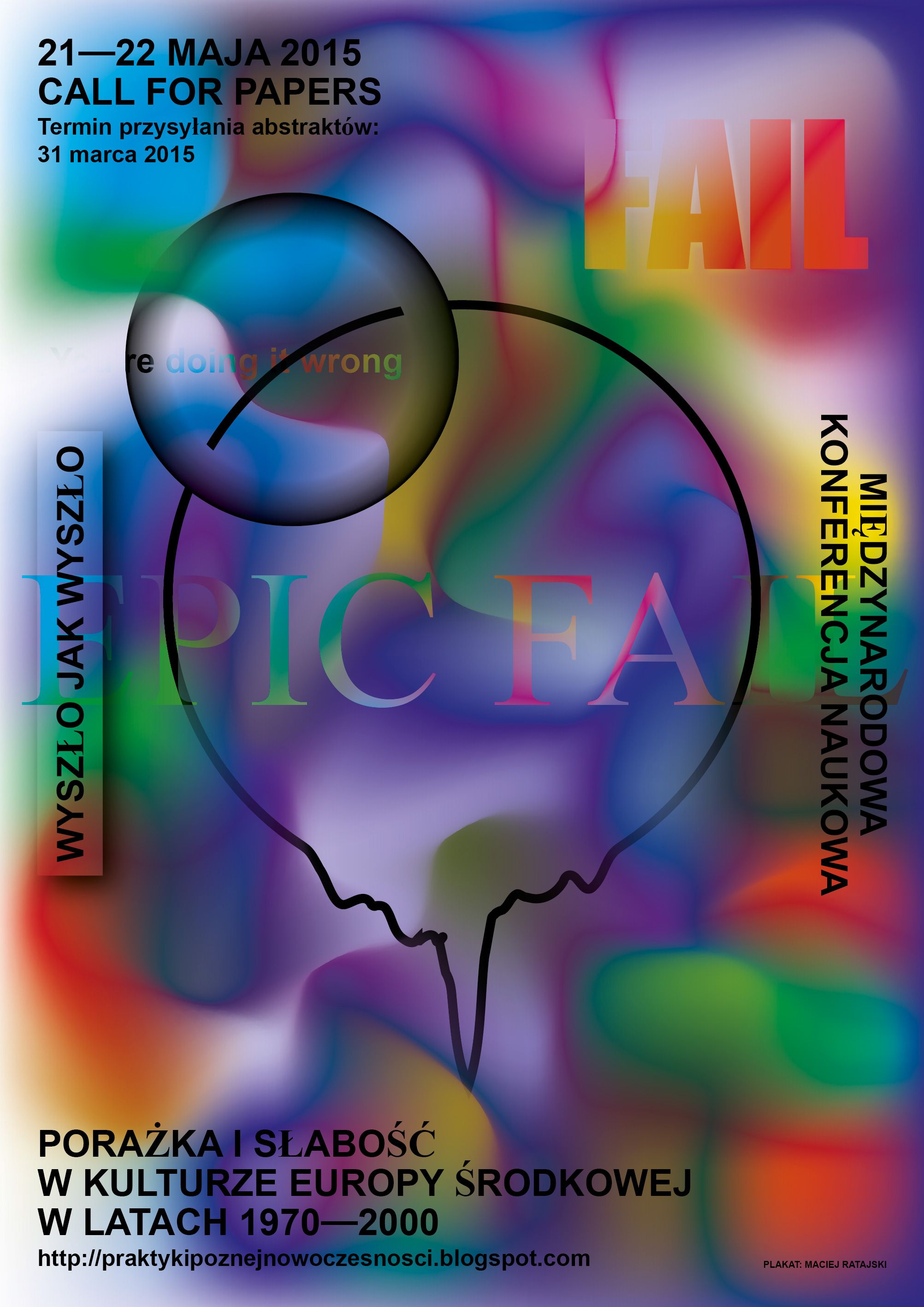 Design of posters and visual identity for an international scientific conference, Wyszło jak Wyszło [Epic Fail]. Failure and Weakness in the Culture of Central and Eastern Europe in 1970–2000, organized by the Practices of Late Modernity Research Group at the University of Warsaw. An intellectual investigation of failure opens an area for reflection on alternative visions of the future and minority narrations that often disappear underneath the predominant history written by winners.